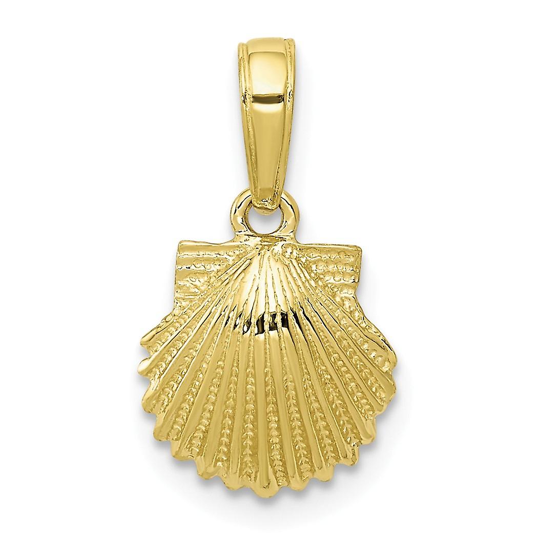 10k Gold Scallop Shell 2 d Charm 17x10mm Wide Pendant Necklace for Women - .6 Grams