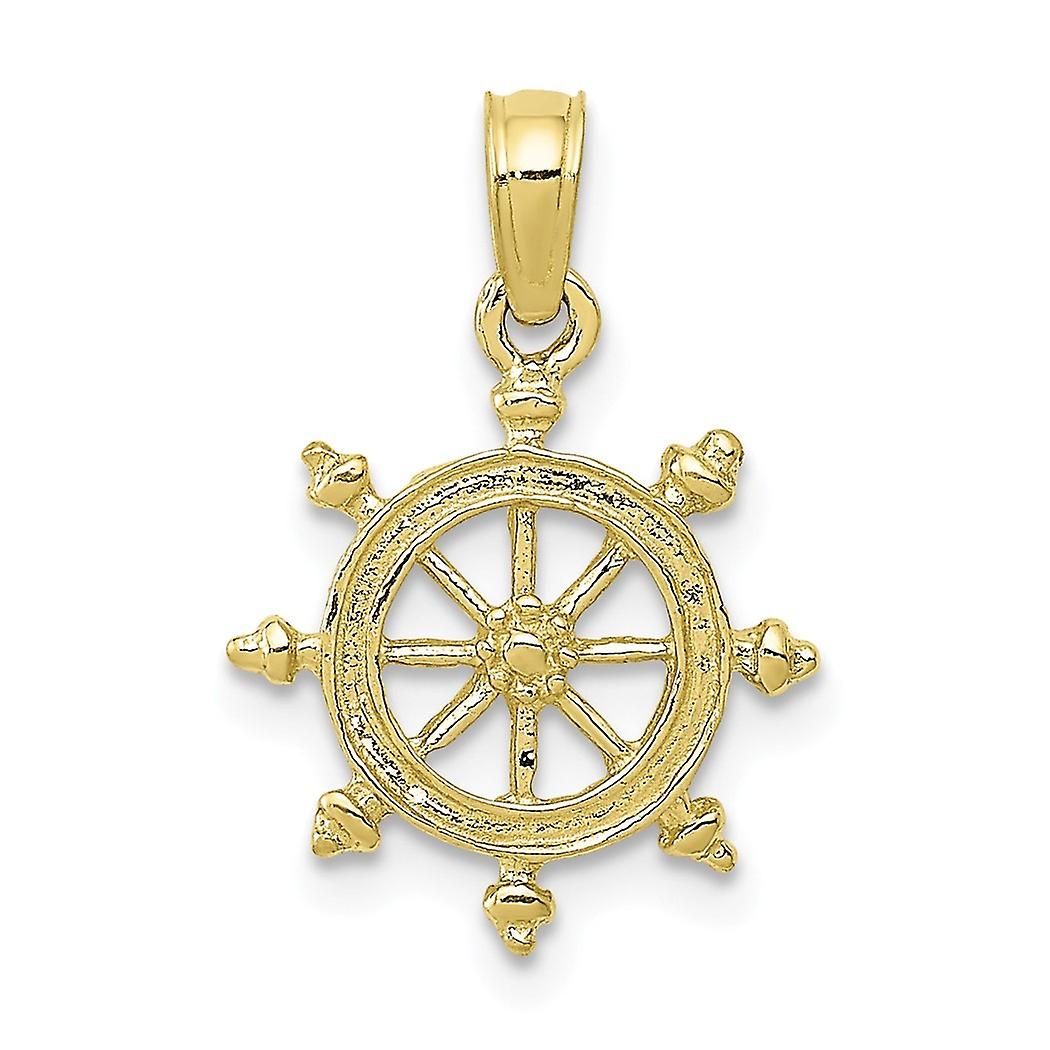10k Gold Ship Wheel Pendant Necklace 20x13mm Wide-Pendant for Women - .6 Grams
