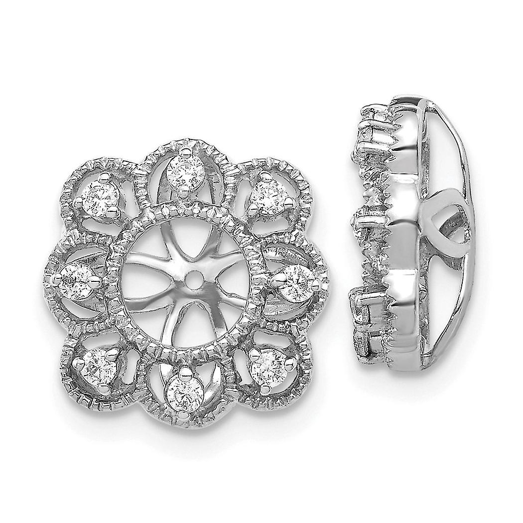 10k White Gold Fancy Diamond Earrings Jackets 10x10mm Wide Earring Jacket for Women