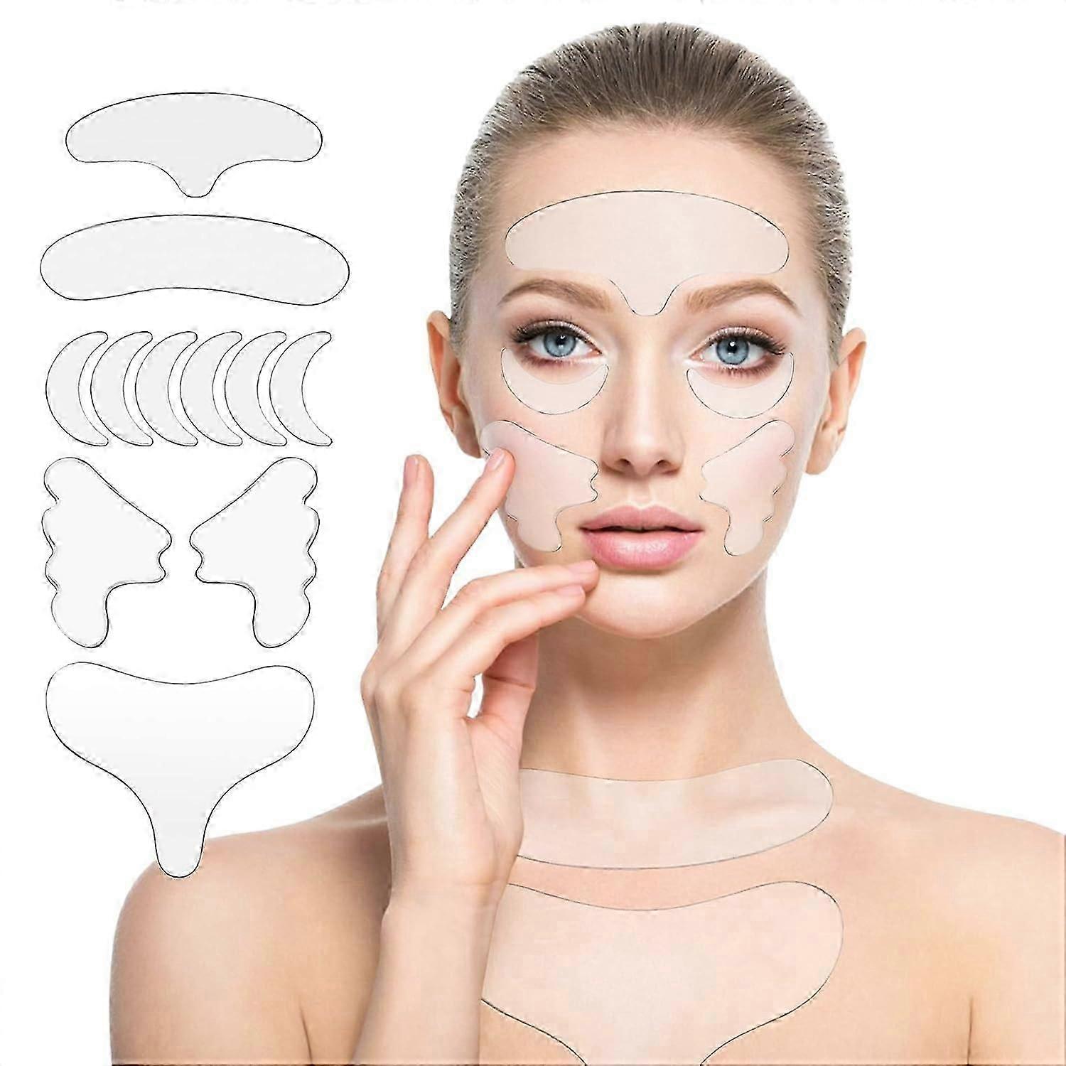11 Pcs Face & Forehead Anti-Wrinkle Patches for Women - Reusable Silicone Anti-Aging Treatment to Reduce Fine Lines on Cheeks, Neck & Chest