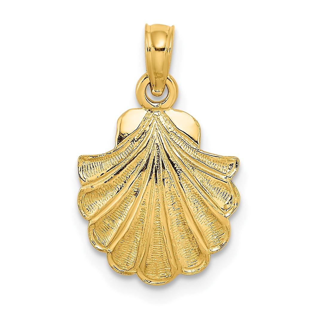 12mm 10k Solid Yellow Gold 2 d Scallop Shell Charm Pendant Necklace for Women - .7 Grams