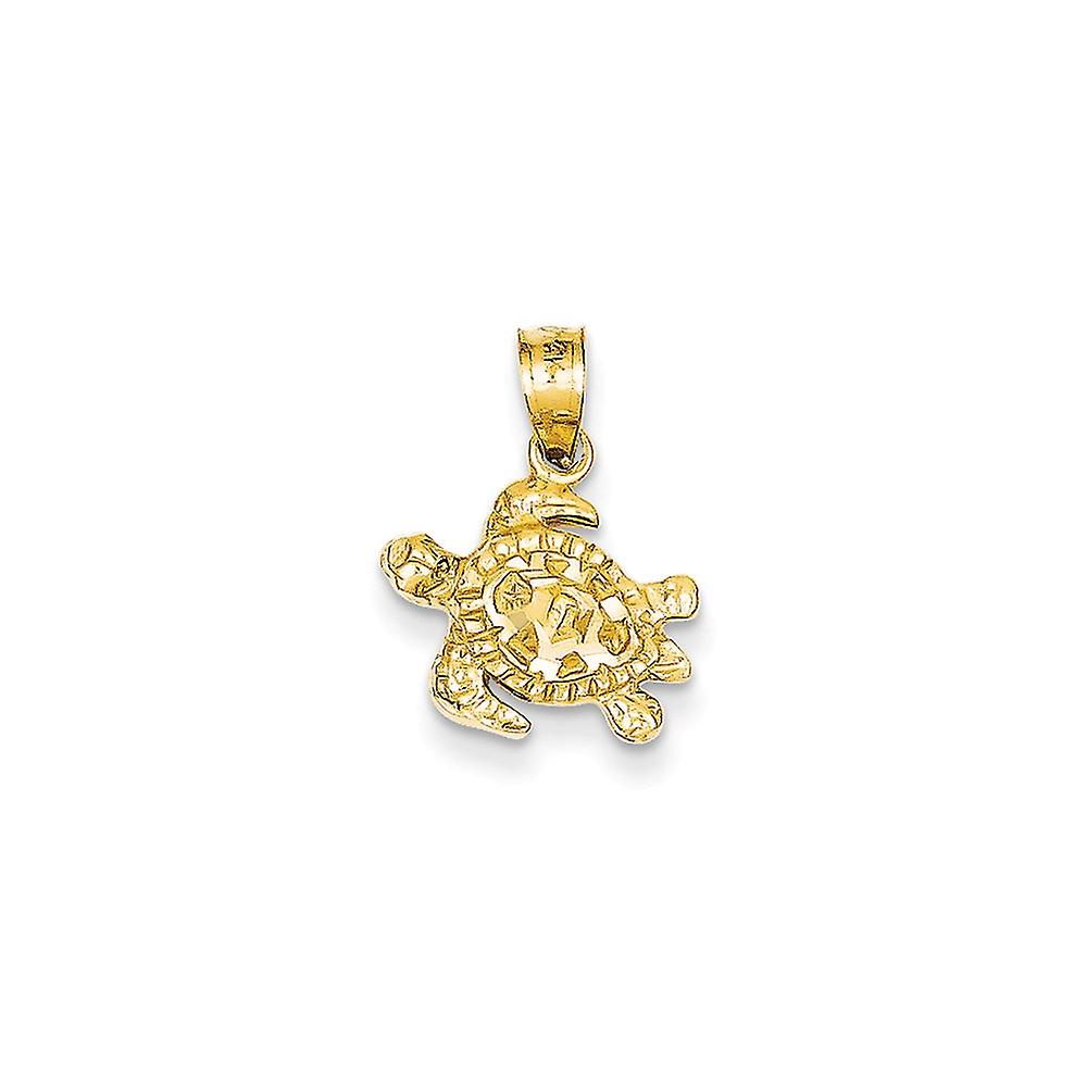 14k Yellow Gold Turtle Pendant Necklace 17x13mm Wide-Pendant for Women - .9 Grams