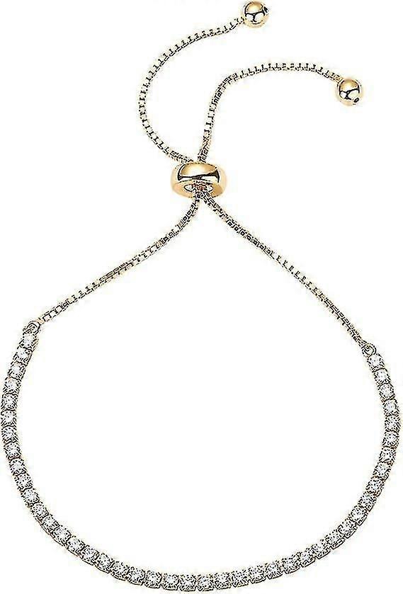 14k Gold Plated Cubic Zirconia Classic Tennis Bracelet For Women | Adjustable Slider