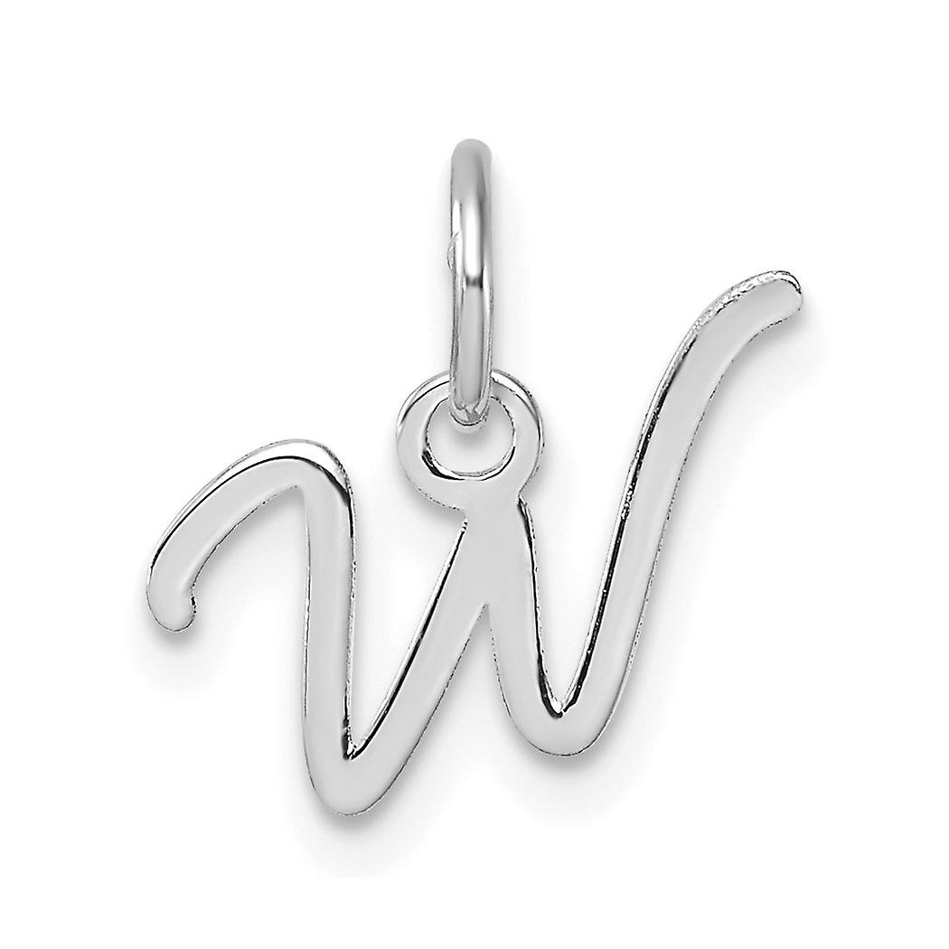 14k White Gold Uppercase Letter W Initial Charm 13mm Long 0.4mm Thick Pendant Necklace for Women