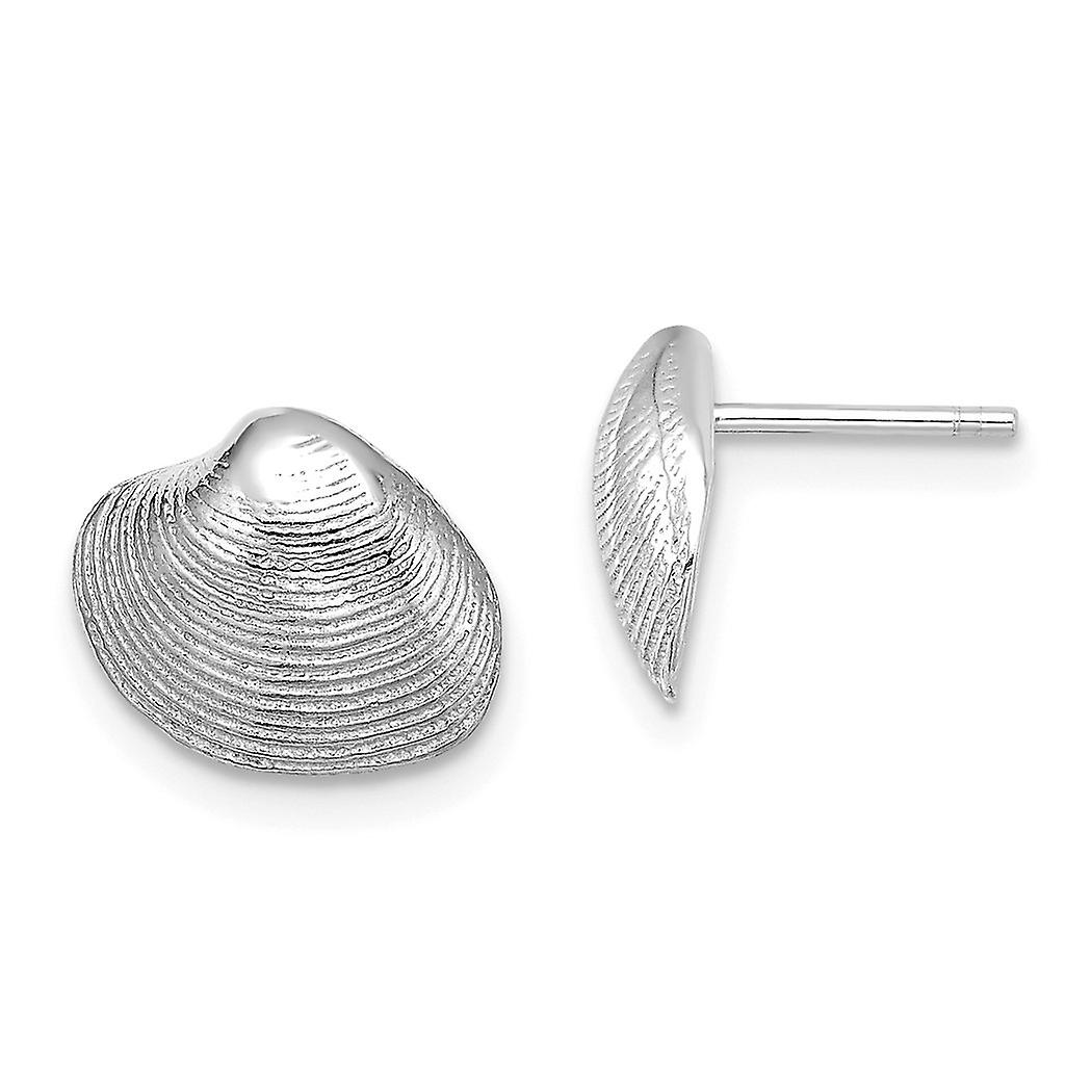 14k White Gold Clam Shell Post Earrings 9x11mm Wide Stud Earring for Women - 1.5 Grams