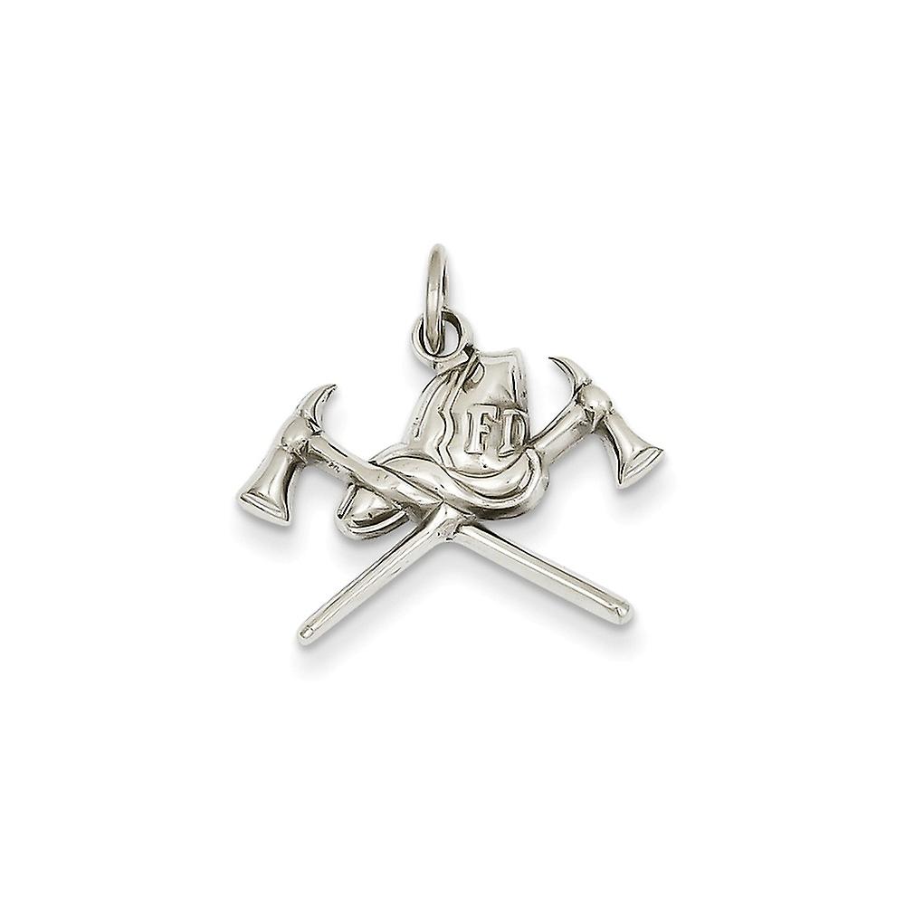14k White Gold Solid Fire Department Charm 21x21mm Wide Pendant Necklace for Women - 1.2 Grams