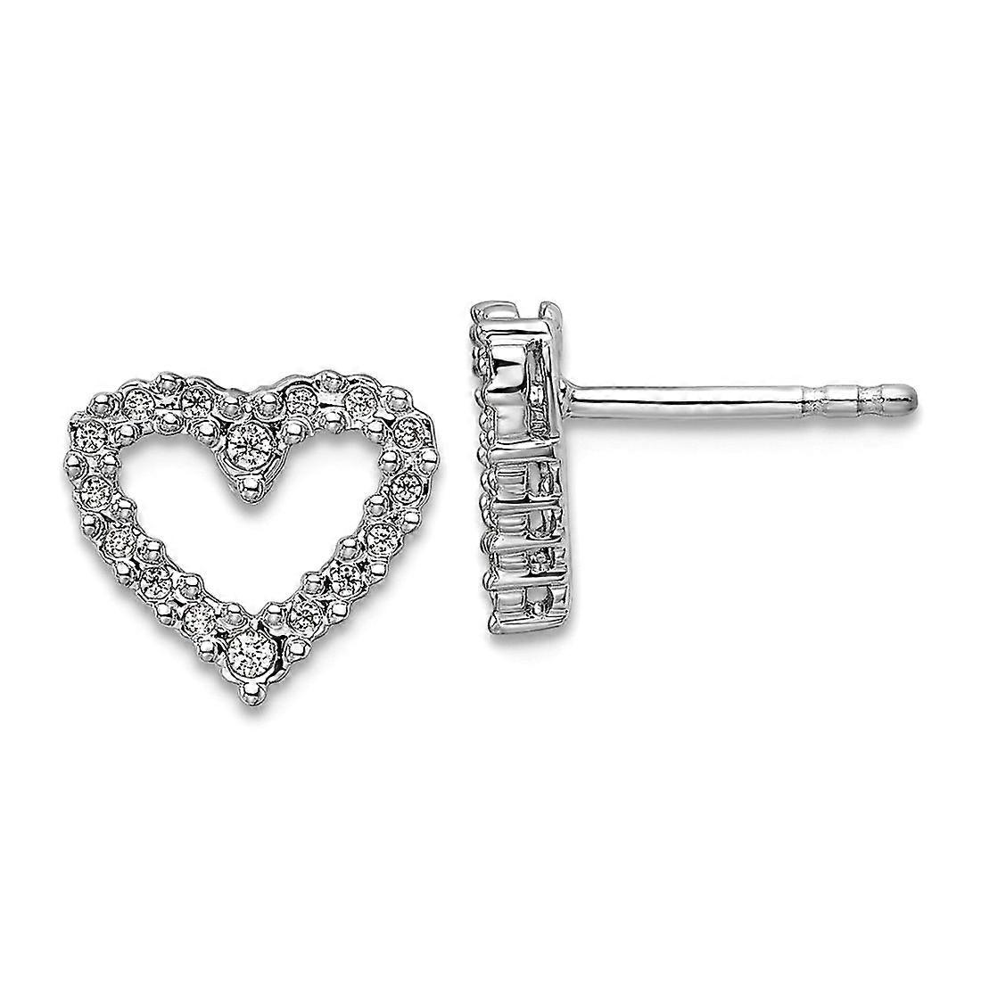 14k White Gold Diamond Love Heart Earrings 9x10mm Wide Stud Earring for Women - .9 Grams .12 dwt