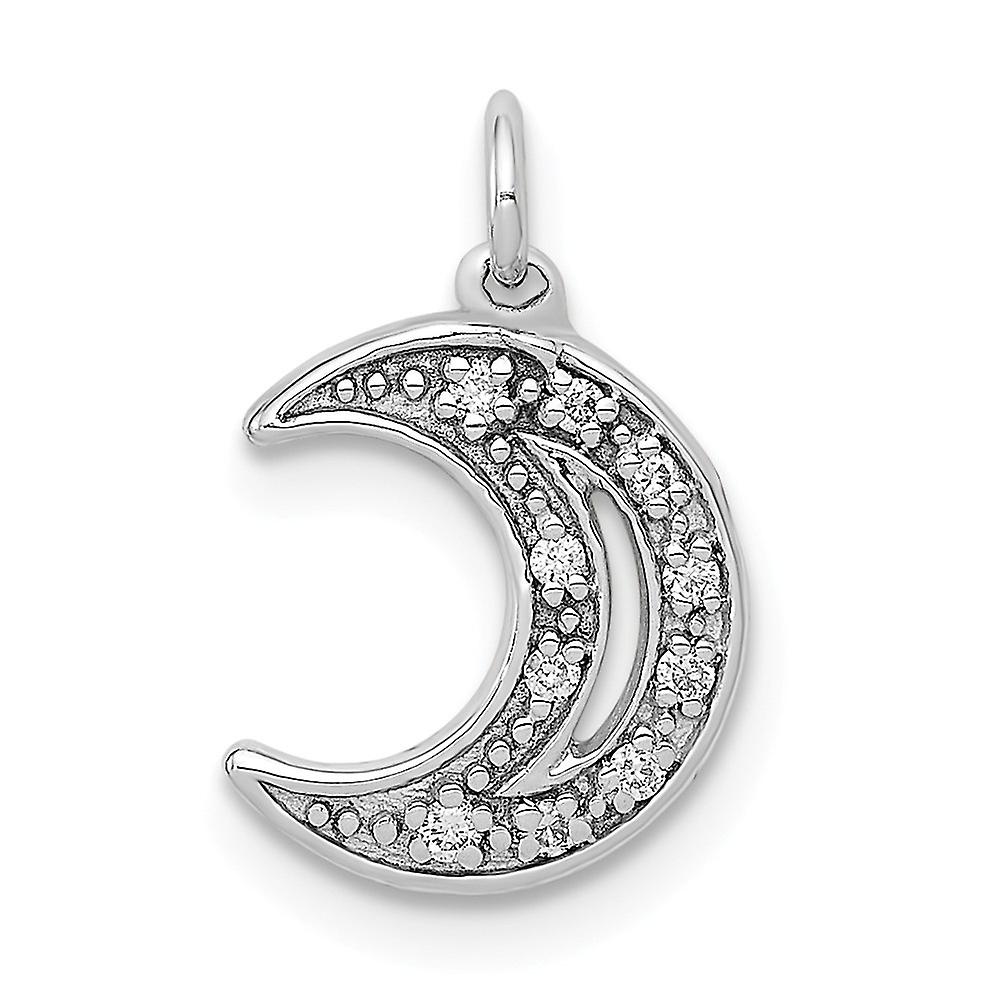 14k White Gold Diamond Celestial Moon Charm Pendant Necklace for Women - .05 dwt