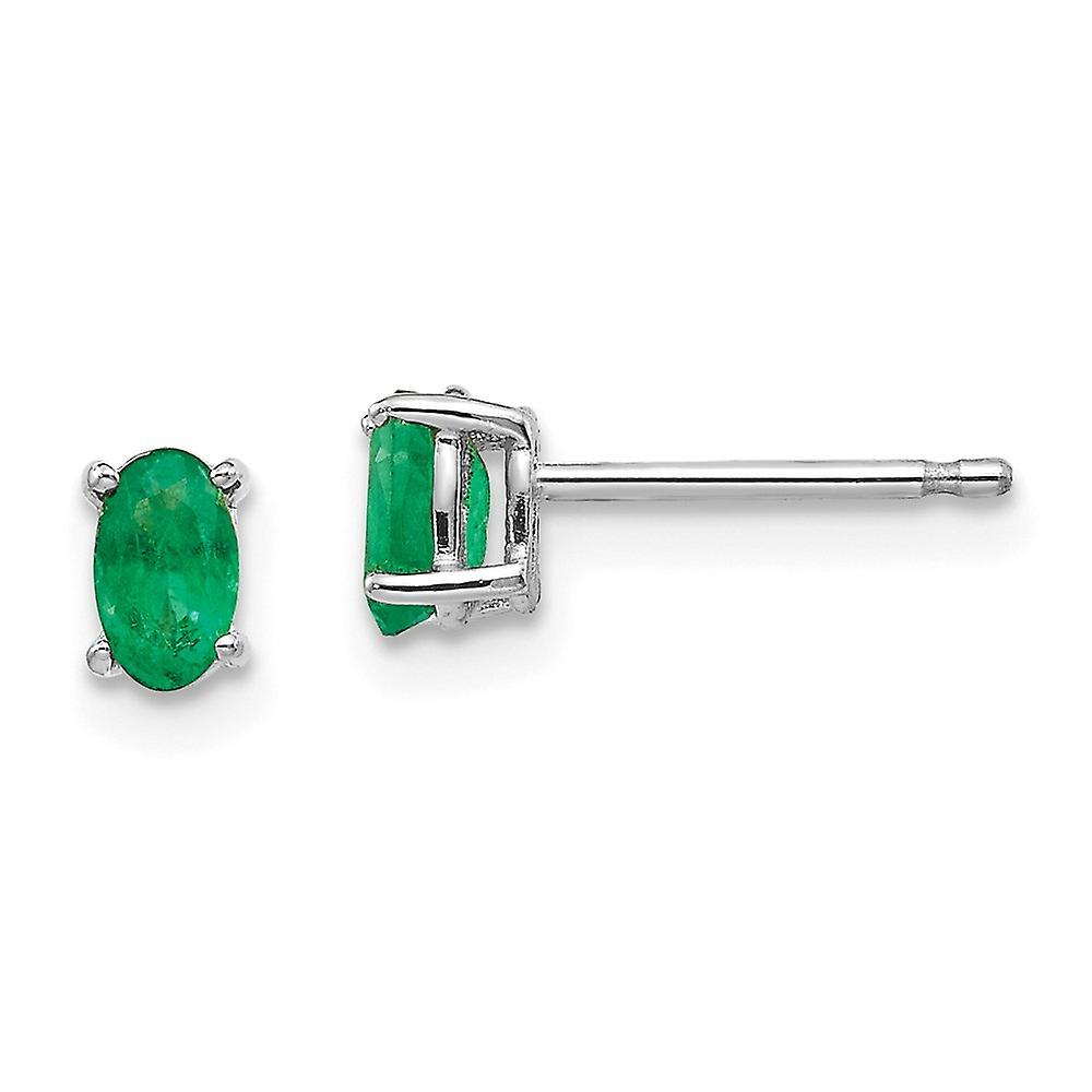 14k White Gold Post Emerald Earrings 5x3mm Wide Stud Earring for Women - .50 cwt