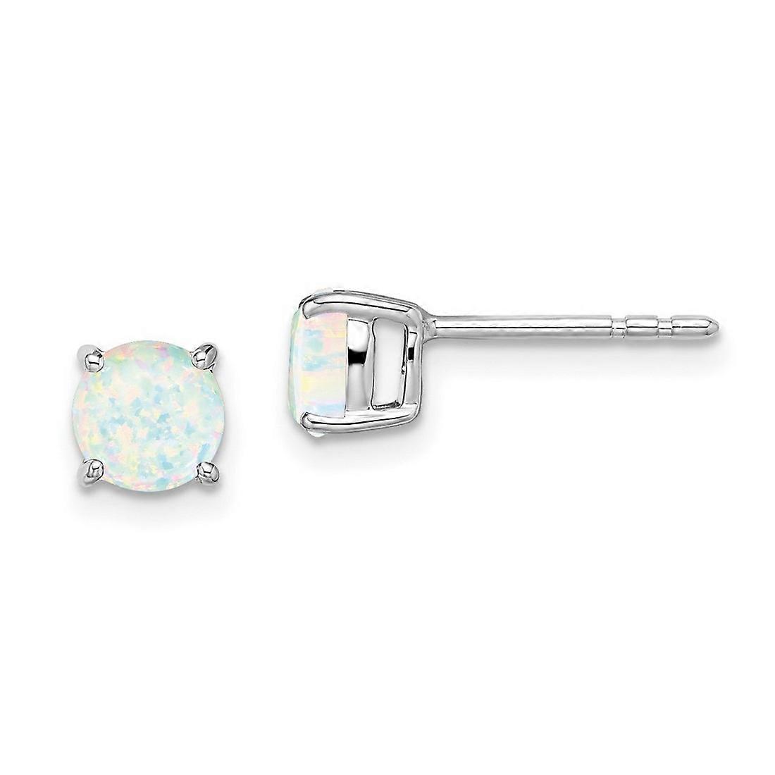 14k White Gold Round Simulated Opal Earrings 5.2x5.2mm Wide Stud Earring for Women