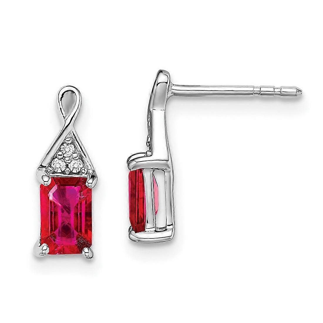 14k White Gold Ruby and Diamond Earrings 12.9x4.7mm Wide Stud Earring for Women