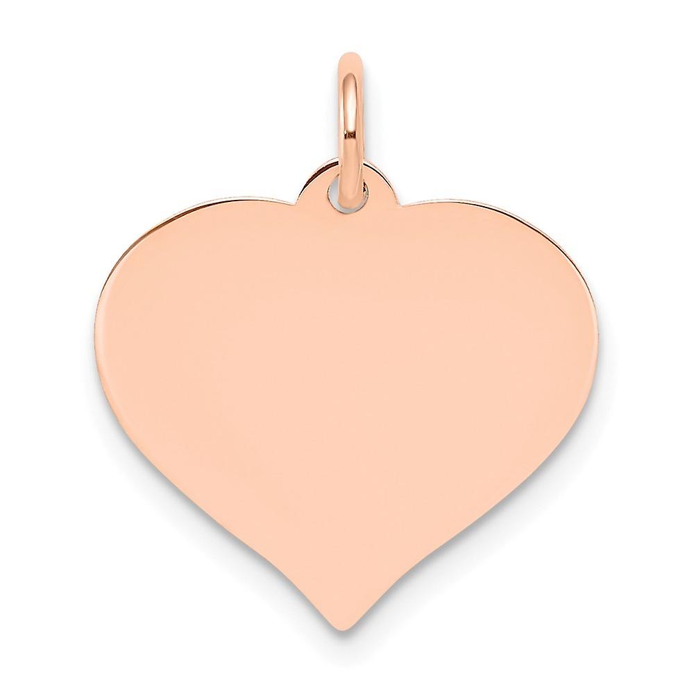 17mm 14k Rose Gold Heart Disc Charm - 1.6 Grams in 14k Rose Gold - Product Attributes: - Engravable - - Charm/Element Width: 17 mm - Charm/Element Thickness: 0.027 gauge - Thickness: 0.027 - Width of Item: 17 mm - Charm/Element Length: 16 mm - Length of Item: 19 mm - Bail Length: 4 mm - Bail Width: 1 mm - Finish: Polished - Feature: Personalized - Feature 2: Polished Back - - This Item Does Not Ship With a Chain