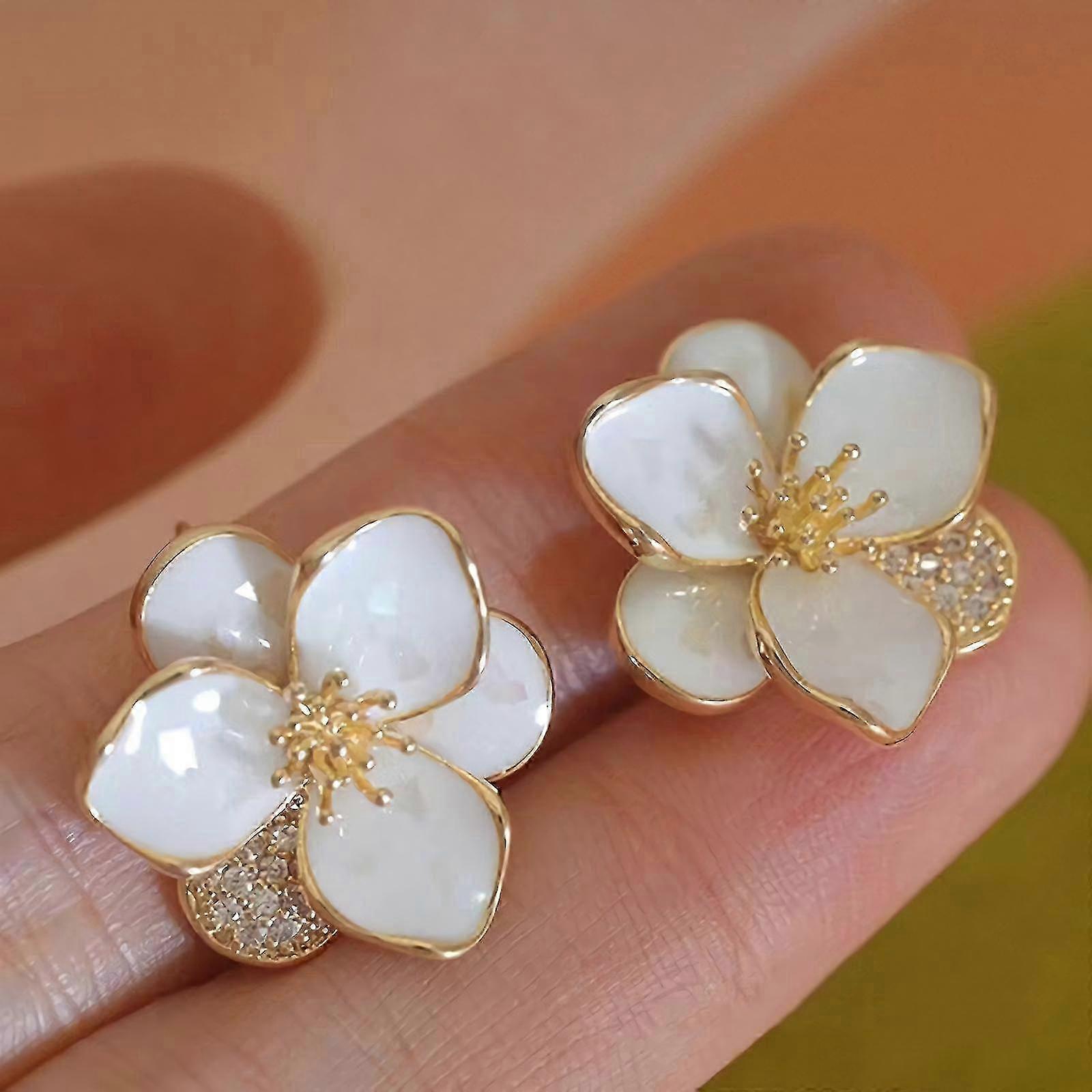 18K Gold Plated Camellia Diamond Enamel Earrings for Women