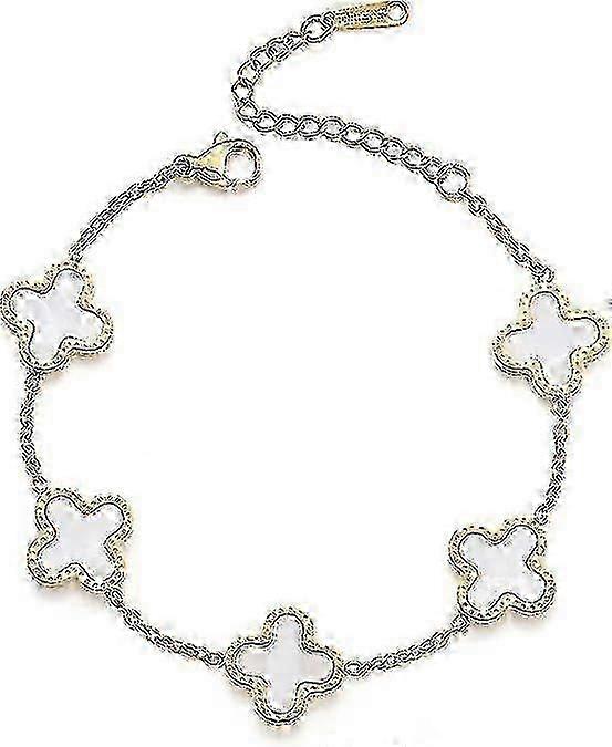 CLOVER BRACELETLegend four-leaf clover symbolizes luck, one hundred thousand beads of clover can only find a four-leaf clover, four leaves respectively represent true love, health, reputation, wealth!SIZE INFORMATION: The Clover Bracelet is 6.41 "and1.5" extension chain, adjustable extension chain design meets most wrist requirements.EXQUISITE TECHNOLOGY: The bracelet is made of stainless steel material, strong, does not fade, but will not let your skin turn green, you can wear at ease!PERFECT GIFTDainty lucky clover bracelets are the best gifts for wives, girlfriends, mothers and daughters on Thanksgiving, Mother's Day, Christmas, birthdays, Valentine's Day and other holidays. Note: Due to the light and screen setting difference, the item's color may be slightly different from the pictures. Please allow slight dimension difference due to different manual measurement.