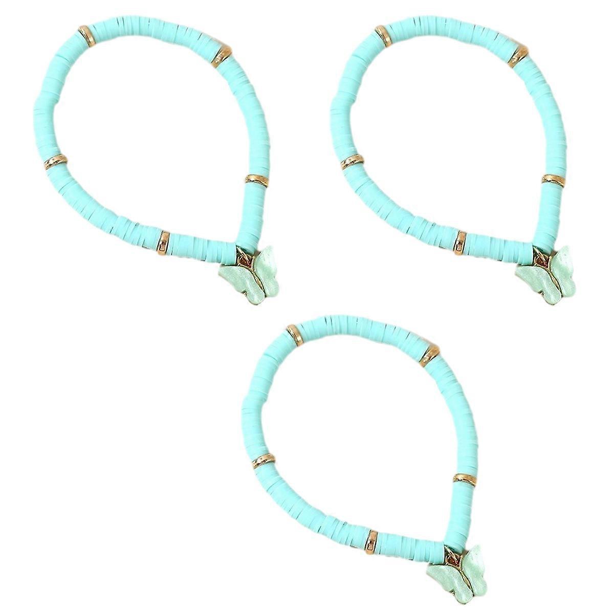 3 Pcs Blue Clay Bracelet Set for Women Stackable Disc Polymer Beaded Stretch Bracelets Bohemian Summer Beach Bracelets Jewelry