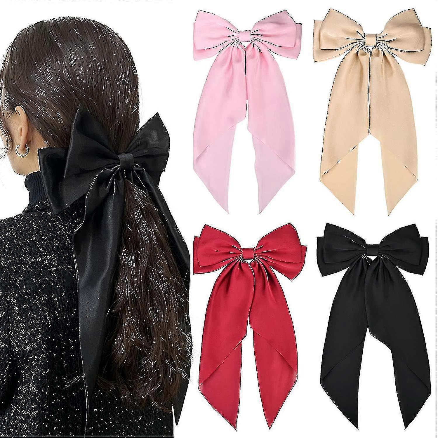 4 Pcs Silk Hair Bow Ribbon Hair Barrettes Clip For Women , Large Satin Hair Bow Hair Slides Clips , Vintage 90'S Hair Accessories For Girls