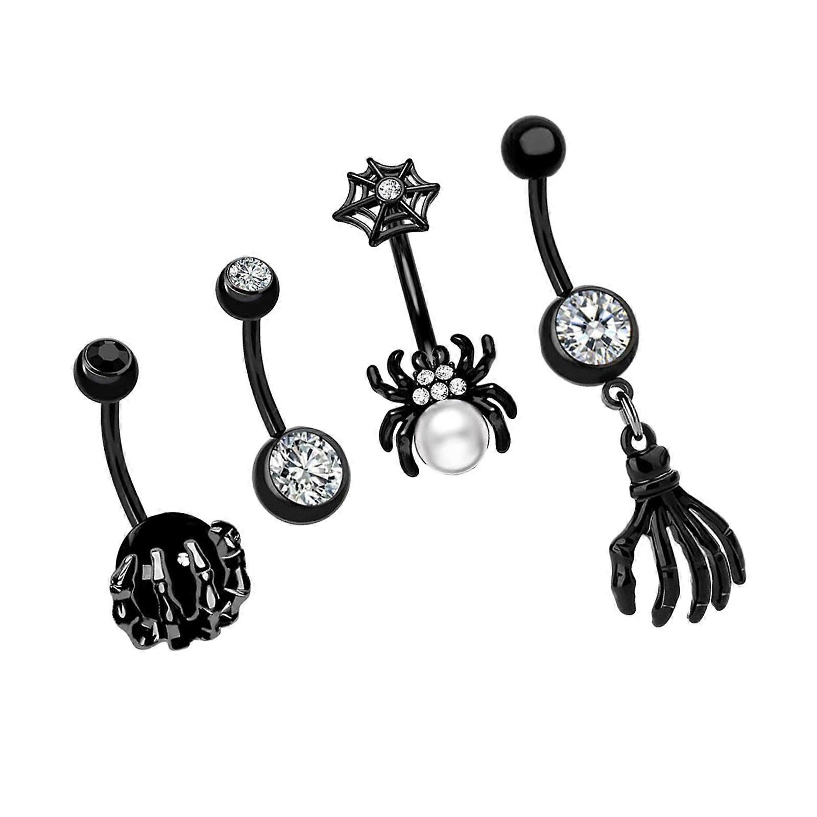 4x Belly Button Ring for Women, Belly Piercing Jewelry, Punk Curved Navel Ring,