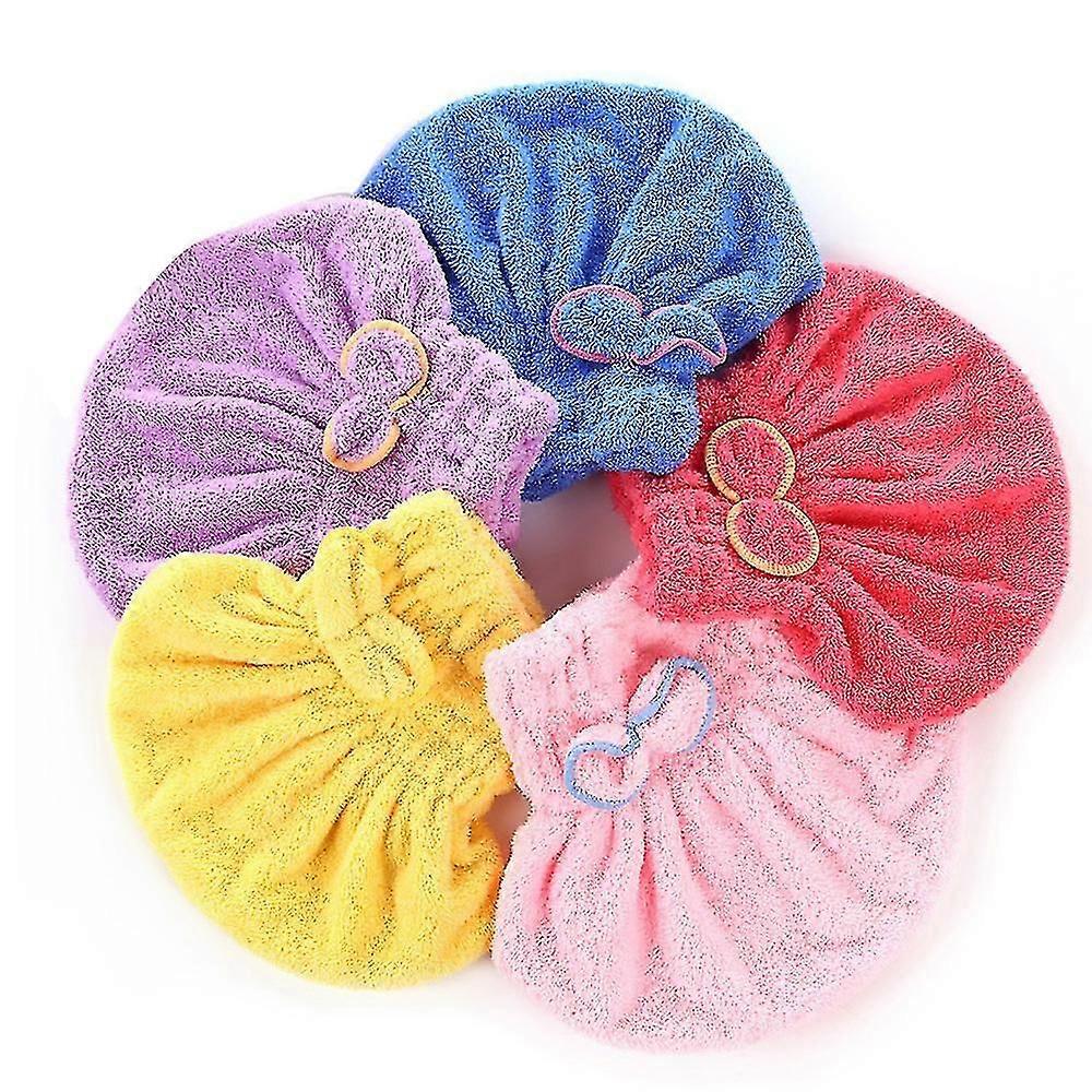 5 Pack Bowknot Microfiber Hair Drying Towels,absorbent Twist Turban Princess Shower Cap For Women