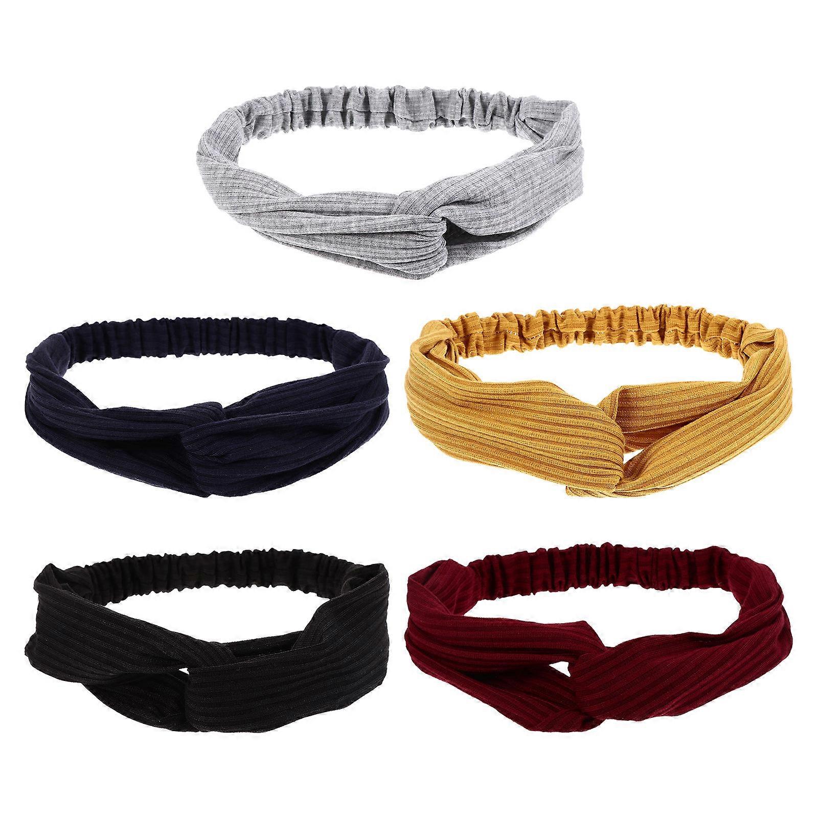 5 Pcs Elastic Cotton Headband Hair Wrap For Women Great For Makeup Yoga Hiking And Keeping Hair In Place Assorted Color 9.43x1.18x0.79in