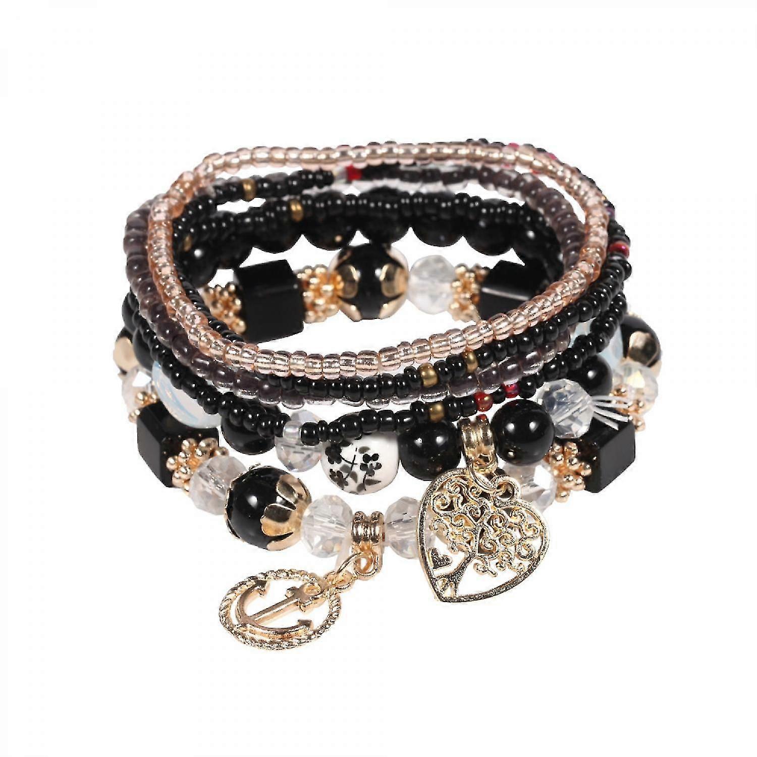 Set Of 6 Bohemian Stackable Bracelets For Women Multilayered Stretch Bead Bracelet Set Boho Bangles Multicolor Fashion Jewelry