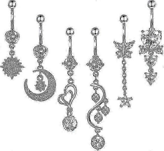 6pcs 14g Dangle Belly Button Rings for Women - Surgical Steel Navel Rings