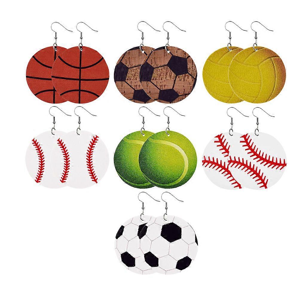 7 Pairs Baseball Leather Earrings for Women Lightweight Ball Game Earrings Round Ball Leather Dangle Earrings