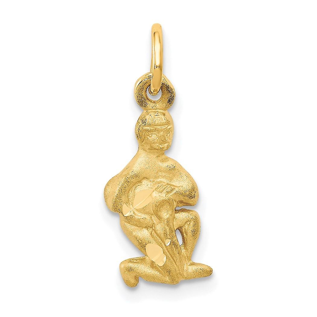 8mm 10k Solid Yellow Gold Aquarius Zodiac Charm Pendant Necklace for Women - .7 Grams