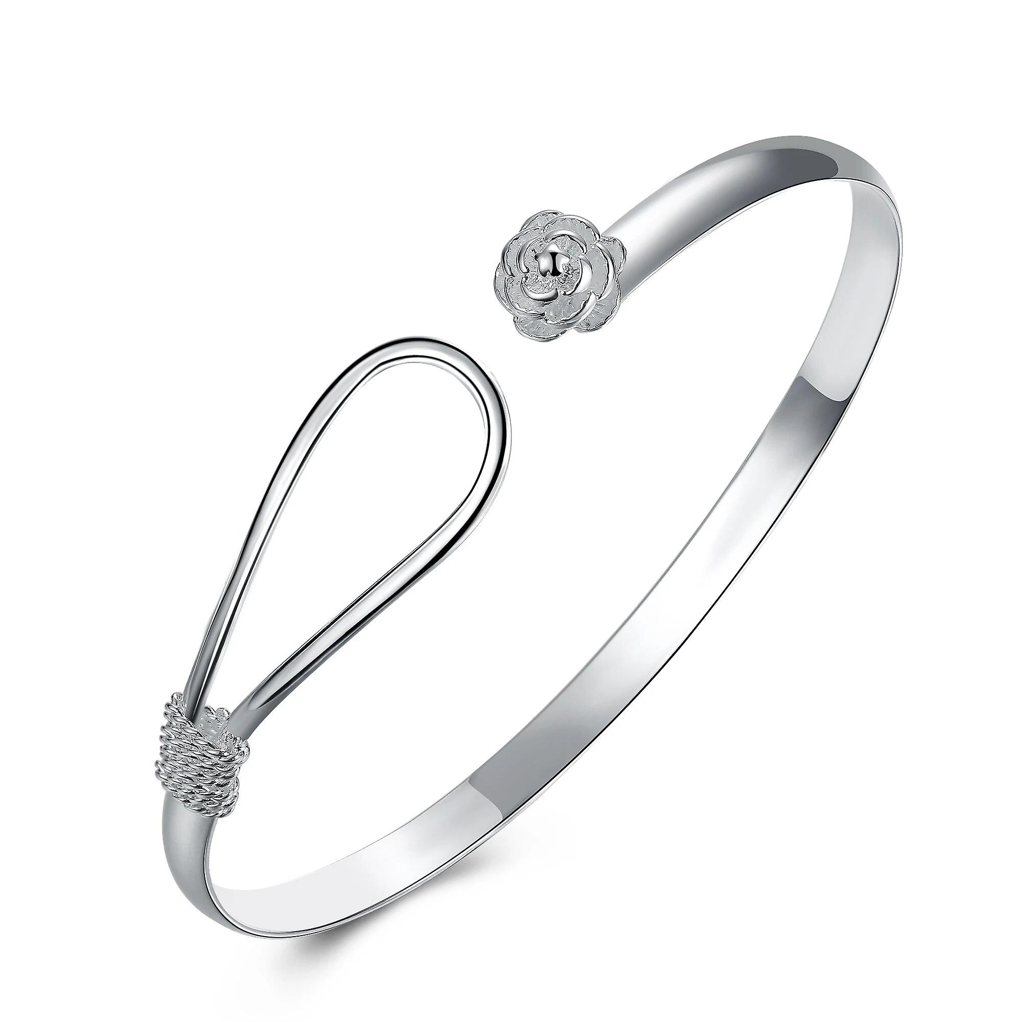 925 Silver Bangle Fashion Jewelry Hollow Square Bracelet For Women