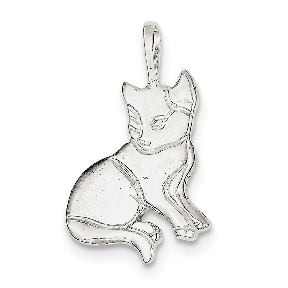 925 Sterling Silver Solid Polished Cat Charm 30x18mm Wide Pendant Necklace for Women - 2.5 Grams