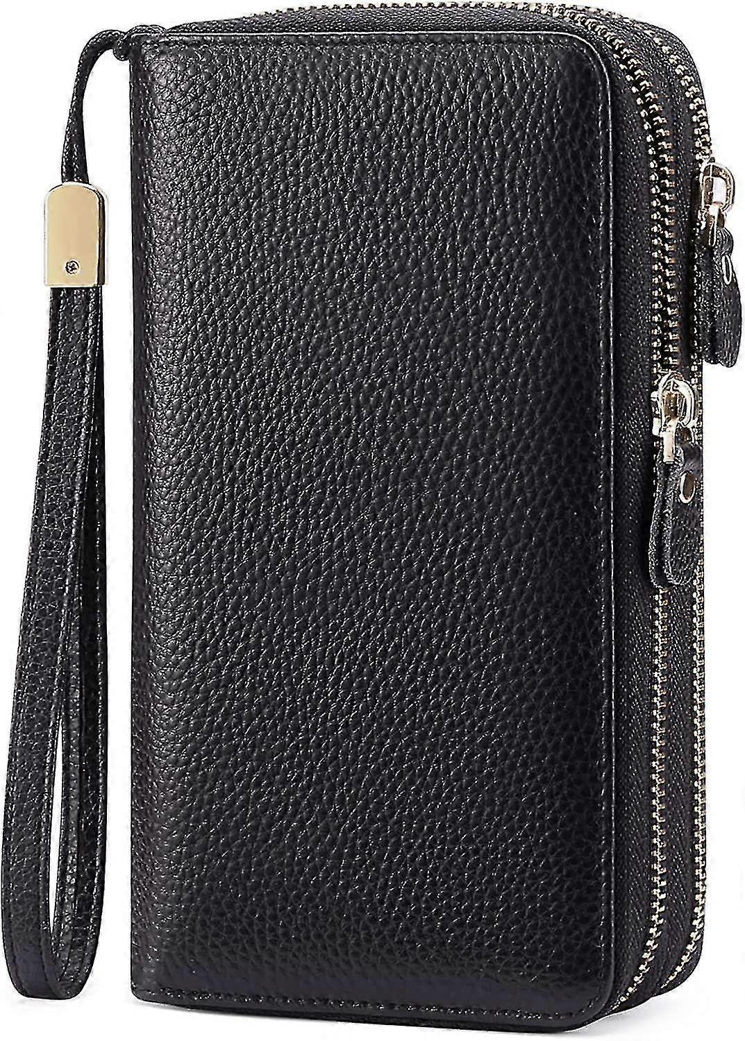 [Genuine LeatherOur genuine leather is sturdy but very soft to the touch. Great stitching and quality metal on the snap, zipper, and handle. This ensures that the women's wallet continues to serve you. [RFID Blocking The need to secure your most crucial information keeps increasing each day. We make this possible for you by fitting each of our wallets with an RFID-blocking feature. It adopts high-security level technology when it is closed, blocking all signals from your credit/debit card or even your ID cards. This ensures that no unauthorized persons can sniff around your purse. [Large CapacityThis women's wallet has 16 credit card slots, two receiptslots, a zipper pocket, two cash compartments, a pen slot, and a wristlet strap. Lots of room to carry our phones, cash, coins, cards and receipts, ID cards, driver's licenses, or family photos. It will be a great size to hold your cards & everything else you need to carry. [Wristlet & Zip AroundThis wallet is attached to a detachable wrist strap, which keeps you easily carrying on traveling, shopping, business, or on vacations. Zip-around style is designed for you to keep your cash flat and easy access to the cards you need. Stay organized anytime [After Sales ServiceCustomer-first is always our principle. contact us for any issues regarding our credit card wallet. A satisfactory solution to your issue is always available. But to clarify it all, it's likely impossible to purchase our ladies' wallets and not fall in love with it, with its great functions and popular colors.