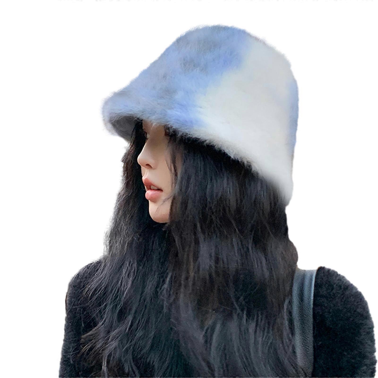Furry Bucket Hat for Women Soft Thick Plush Hat Girls Tie Dye Color Fisherman Cap Fashion Female Winter Autumn Headwear C