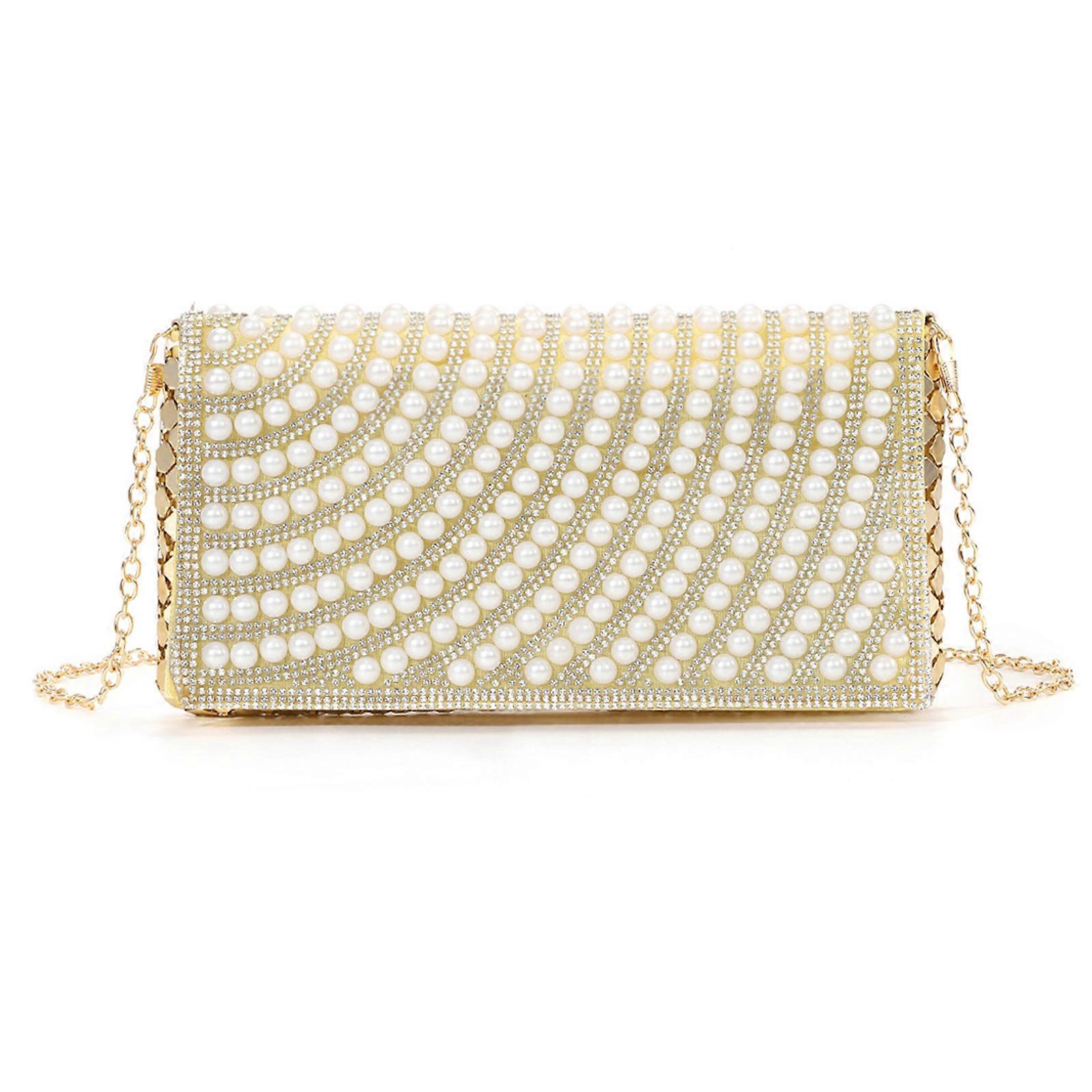 Women Evening Bag Stylish Crossbody Bag with Removable Chain Pearls Handbag Purse Rhinestones Shoulder Bag for Wedding
