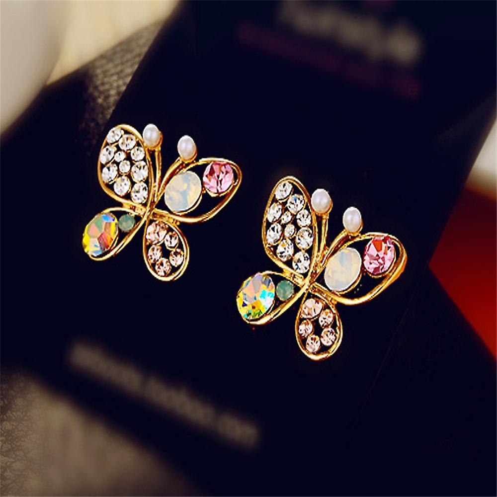 Women earring girl stud ear Drop Elegant Hollow Rhinestone Butterfly Trendy Butterfly colorful Party