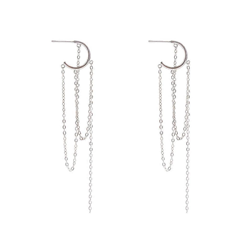 Women Earrings Dangle Tassel Temperament Ear Rings Exaggerated Fashion Earrings Simple Earbob Silver 7.5x1cm Copper Ear Decoration 1 Pair