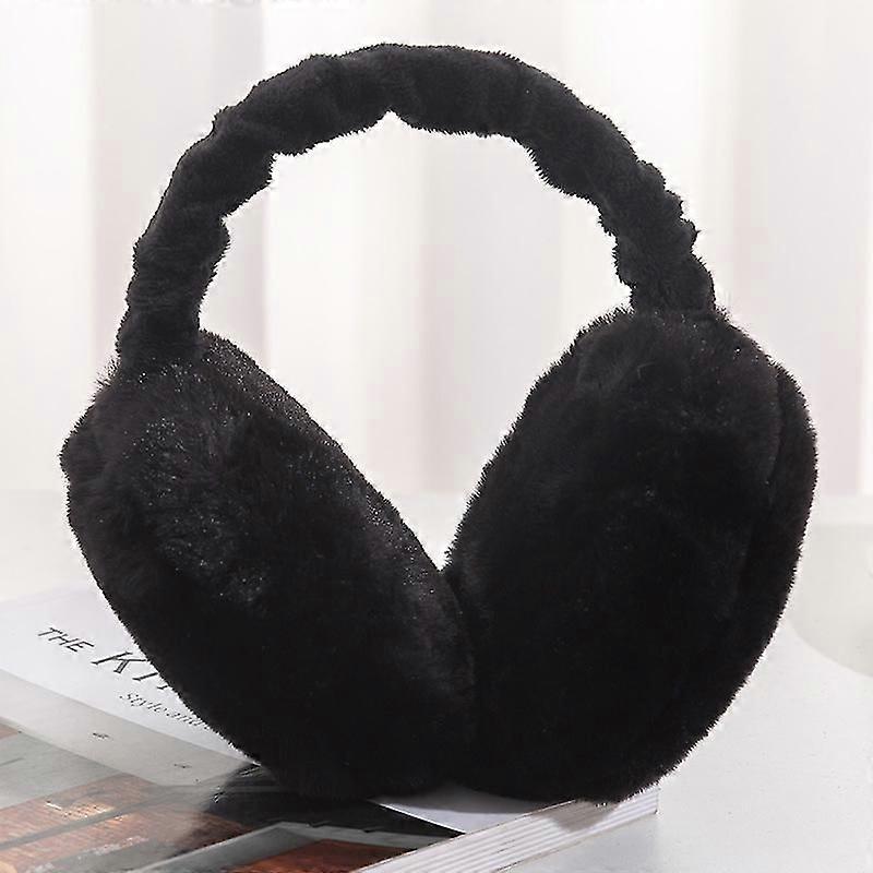Women Ear Muffs Winter Outdoor Girls Earmuffs Foldable Faux Fur Fleece Warm Ear Warmers,black
