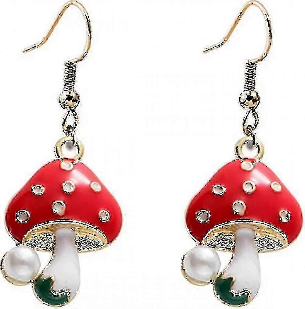 Women's Mushroom Earrings Cute And Cute 14k Gold-plated Enamel Simulation Bright Red Mushroom Aesthetic Metal Pendant Food Earrings Jewelry Gifts