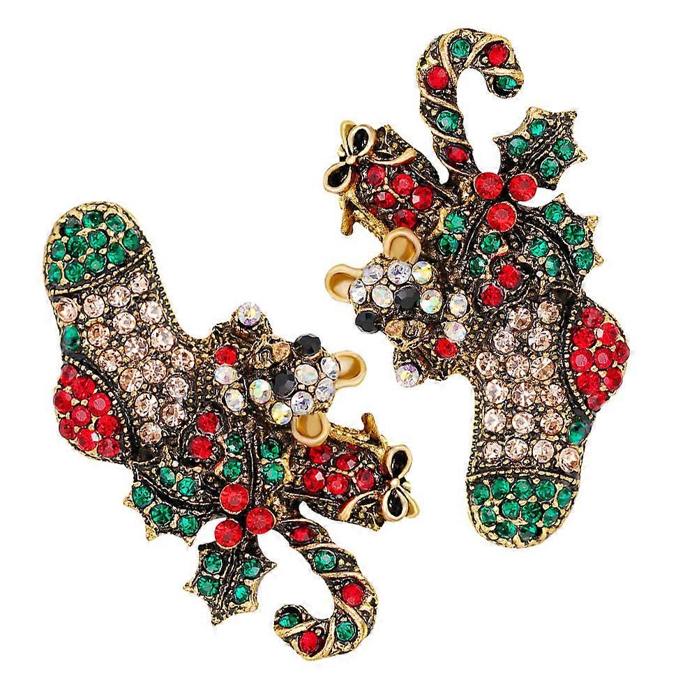 Women Christmas Socks Shaped Brooch Decoration For Party And Festival 2Pcs Colorful Crystal Accessory