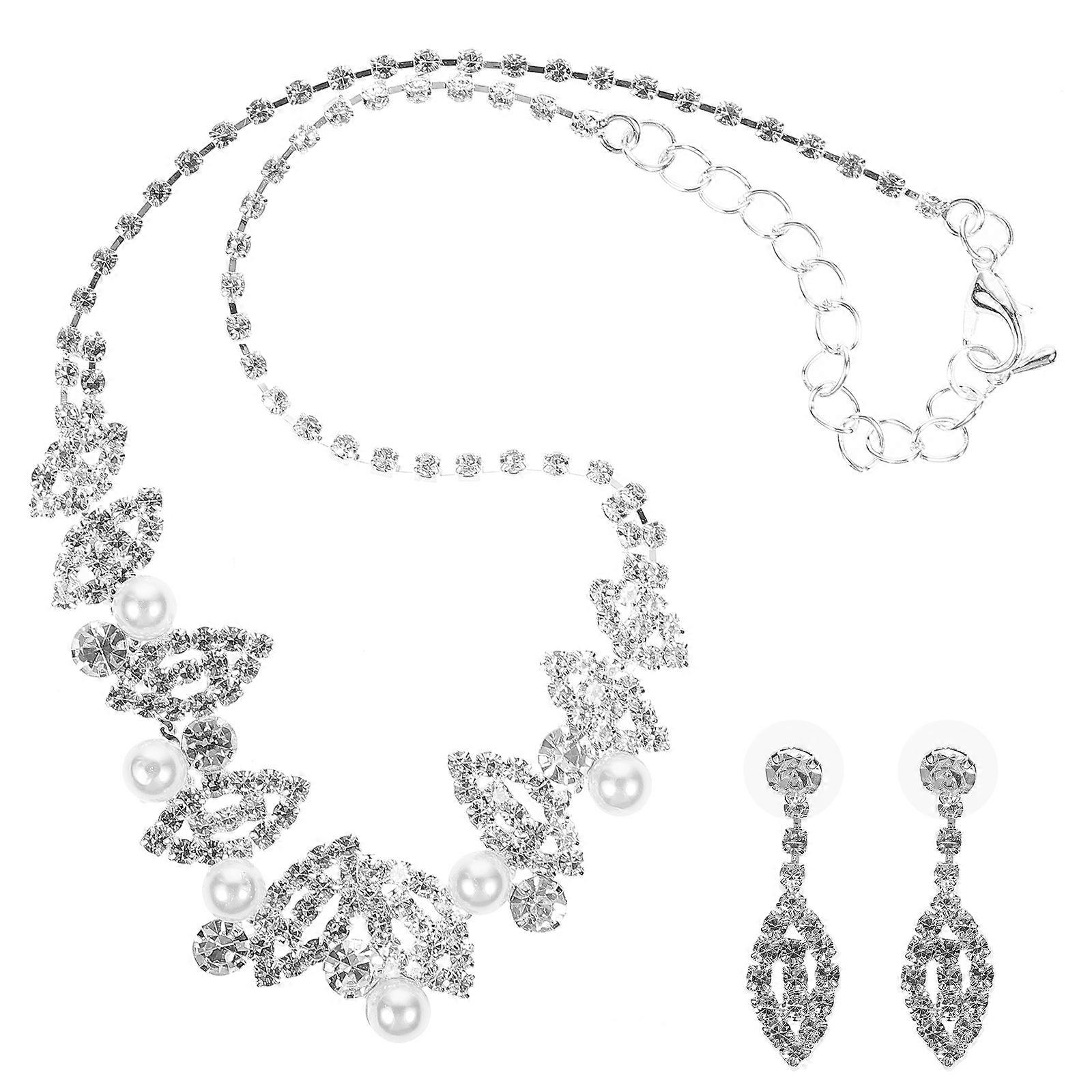 Women's Jewellery Set Water Drops Necklace Earrings Simple Rhinestone Wedding Accessories for Bride 2Piece Set