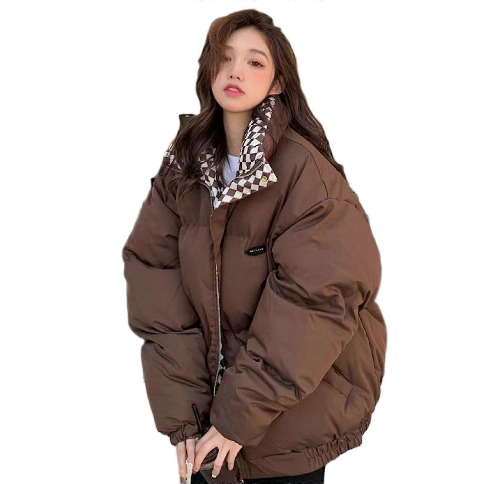 Women Short Puffer Jackets Cotton-Padded Thick Drawstring Parkas Zipper Winter Bubble Coat Warm Casual Hot Street Out coffee S