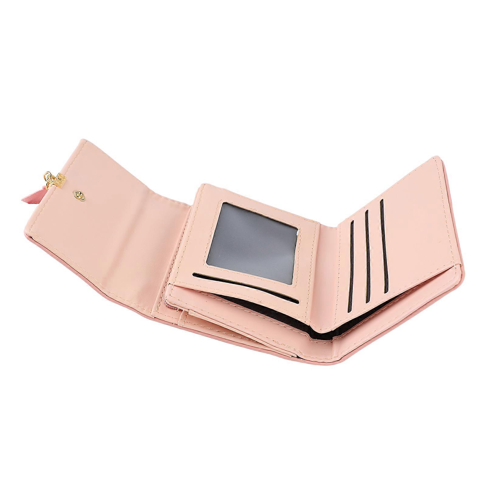Women Short PU Wallet Multi Slots Stylish 3 Folding Wallet with Hardware Buckle for Photo Cards Cameo Brown Free Size