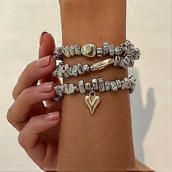 Women’s Stackable Dumpy Gold Beaded Bracelet Elastic Stretch Bangle Jewelry Irregular Art Design Wristband Accessory