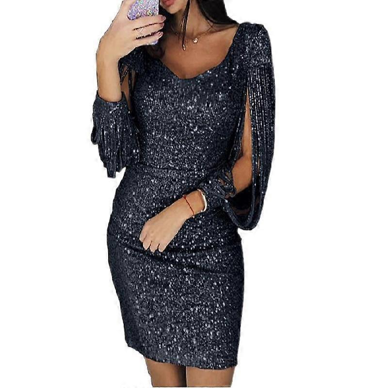 Women's Sexy Mini Dress Glittery Long Sleeve Hip Dress Gorgeous Sequin V Neck Long Sleeve Dress