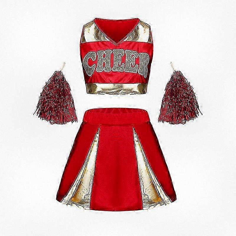 Women's Cheerleading Outfit Fancy Dress Costume with Pom Poms for Dance Team