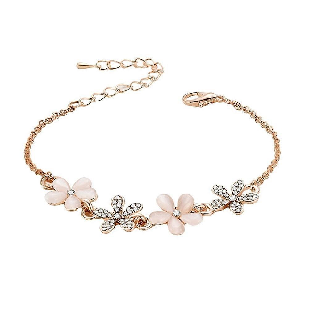 Women Trendy Rhinestone Flower Floral Jewelry Adjustable Pendant Lock Bracelet