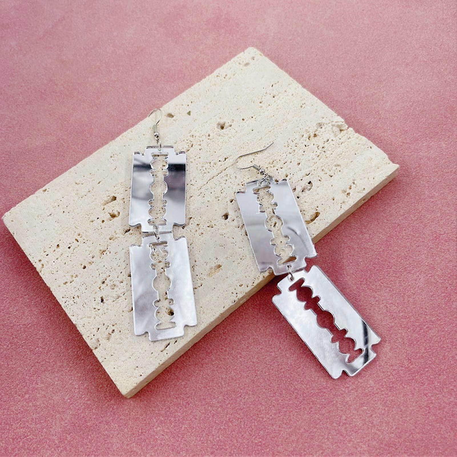 Women\'s Hip-Hop Style Razor Blade Earrings Gothic Mirror Long Hanging Hook Earrings for Parties and Nightclubs
