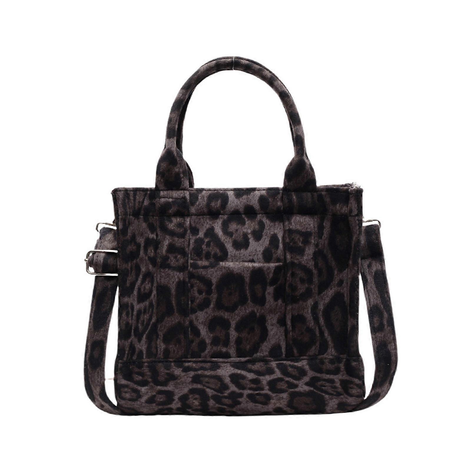 Women Fashion Handbag Small Square Bag Simple Shoulder Bag Top Handle Bag Leopard Pattern Crossbody Bag for Work Gray