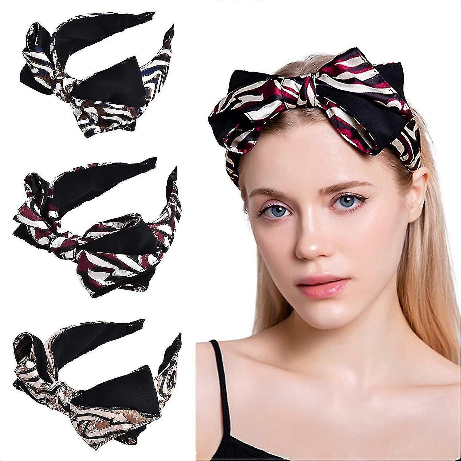 Women's Fashion Headbands Girls Hairbands And Bow For Workout Work Travel 3 Pack