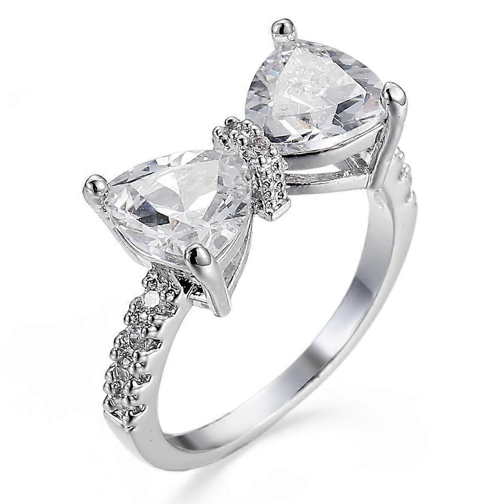 Female Fashion Lovely Bowknot Design Zircon Ring Metals Type:Silver Surface Width:3mm,4mm,5mm Shape\pattern:Bowknot Gender:Women Material:Cubic Zirconia size:6 7 8 9 10 Gifts:New Year,Valentine's Day,Easter,Mother's Day Gifts For:Daughter, Mother,Lover, Girlfriend 1. Material: Cubic Zirconia 2. Processing technology: insert drill 3. Style: female style