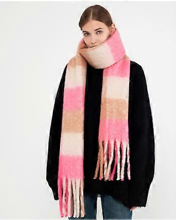 Women's faux wool plaid fringe rainbow scarf, winter warm long scarf shawl-beige pink brown plaid