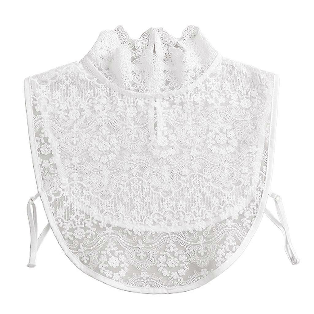 Women Ruffles Turtleneck Fake Collar Floral Lace Curved Detachable Half Blouse